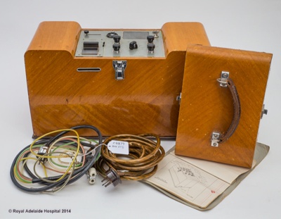 Subject and Association DescriptionBiography file folder contains folder titled "Memorabilia scientific medical instruments - Both" donated to Heritage in 1999 by Ona Butler. This contains a photo of this unit, with notes suggesting it was manufactured circa 1948 and stating that "main design was by our Rob Kranz", and that this was also the first Both electrocardiograph with ink written tracings. File also contains photo of Sister Terry Osmond with the unit at Calvary Hospital. Ref also A0008 RAH / A00016 RAH, Both Equipment Ltd